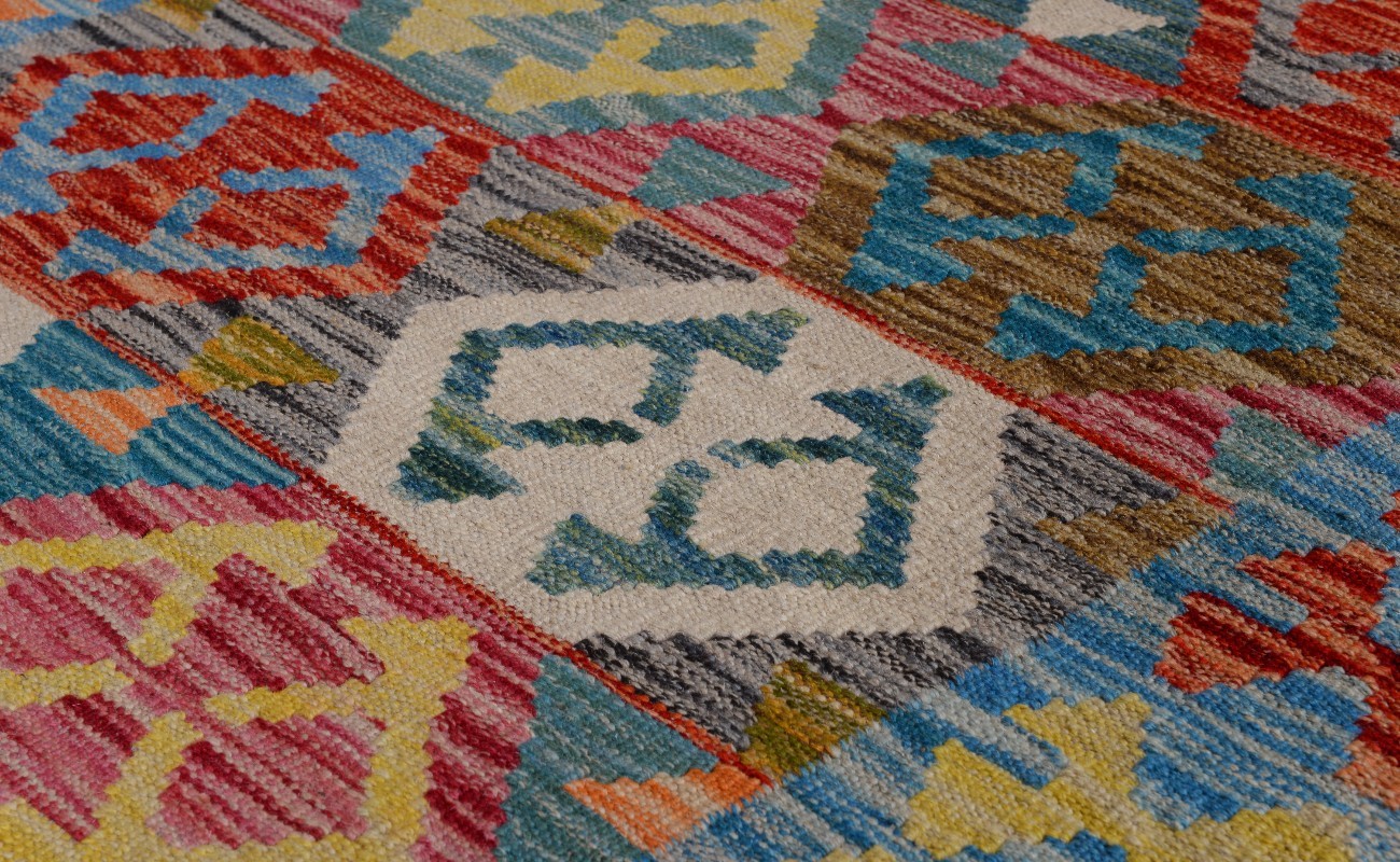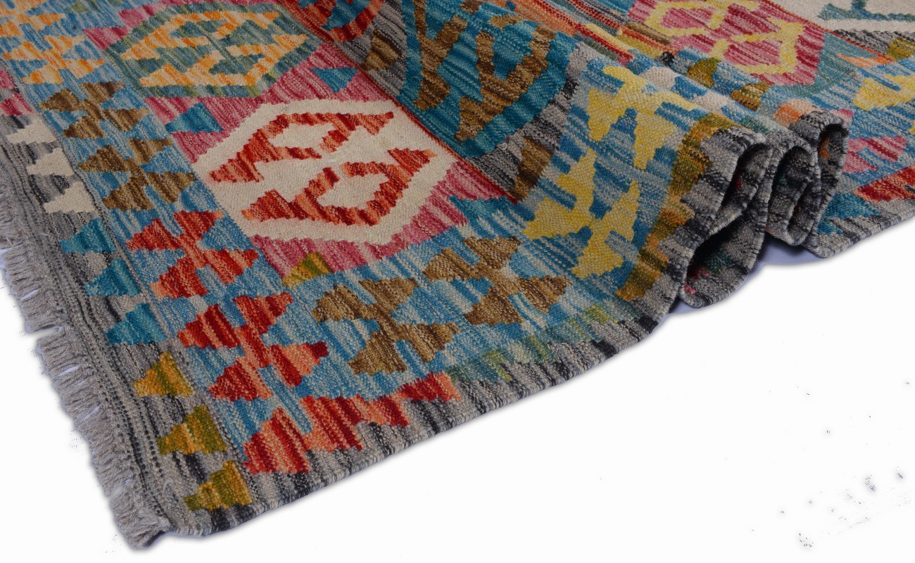 Hand Woven colorful Kilims uses vegitable dyes and handspun wool. Morrocan style pattern makes them a great option when you need a little character.