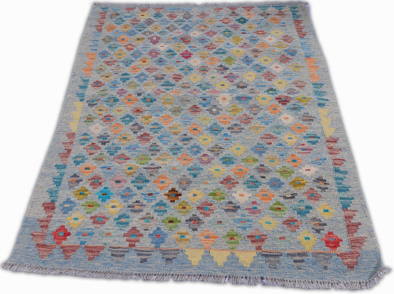 Hand Woven colorful Kilims uses vegitable dyes and handspun wool. Morrocan style pattern makes them a great option when you need a little character.