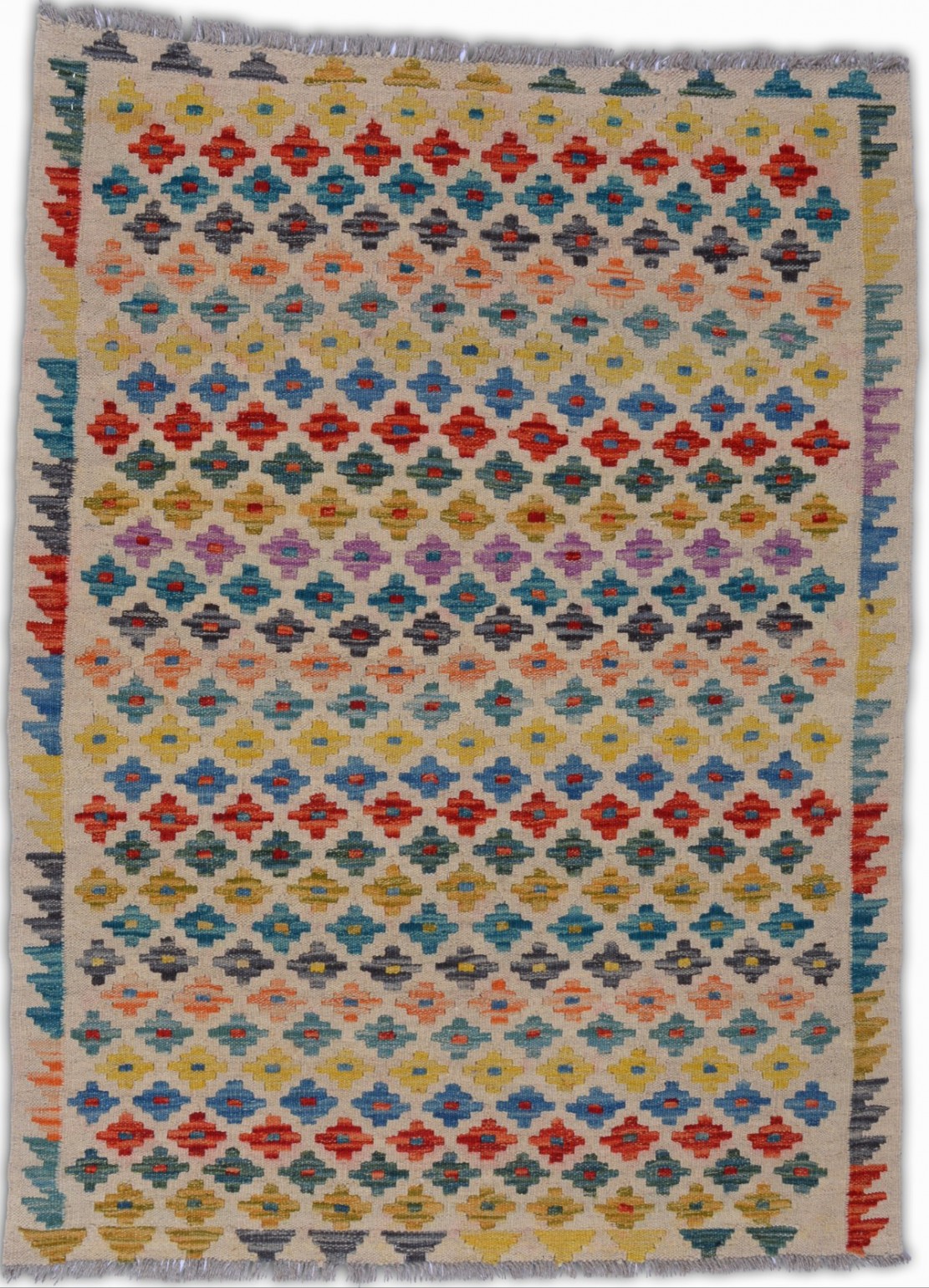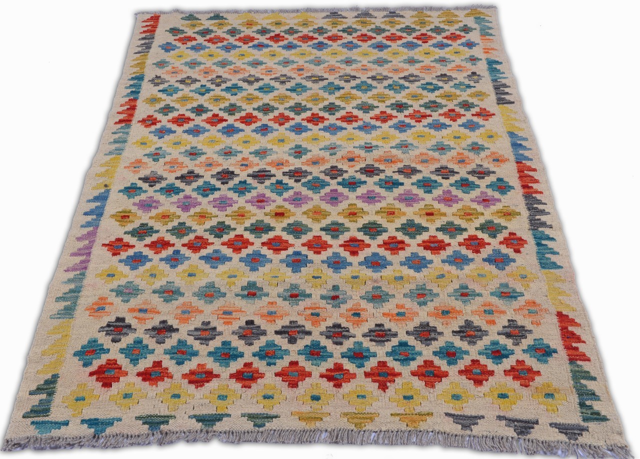 Hand Woven colorful Kilims uses vegitable dyes and handspun wool. Morrocan style pattern makes them a great option when you need a little character.