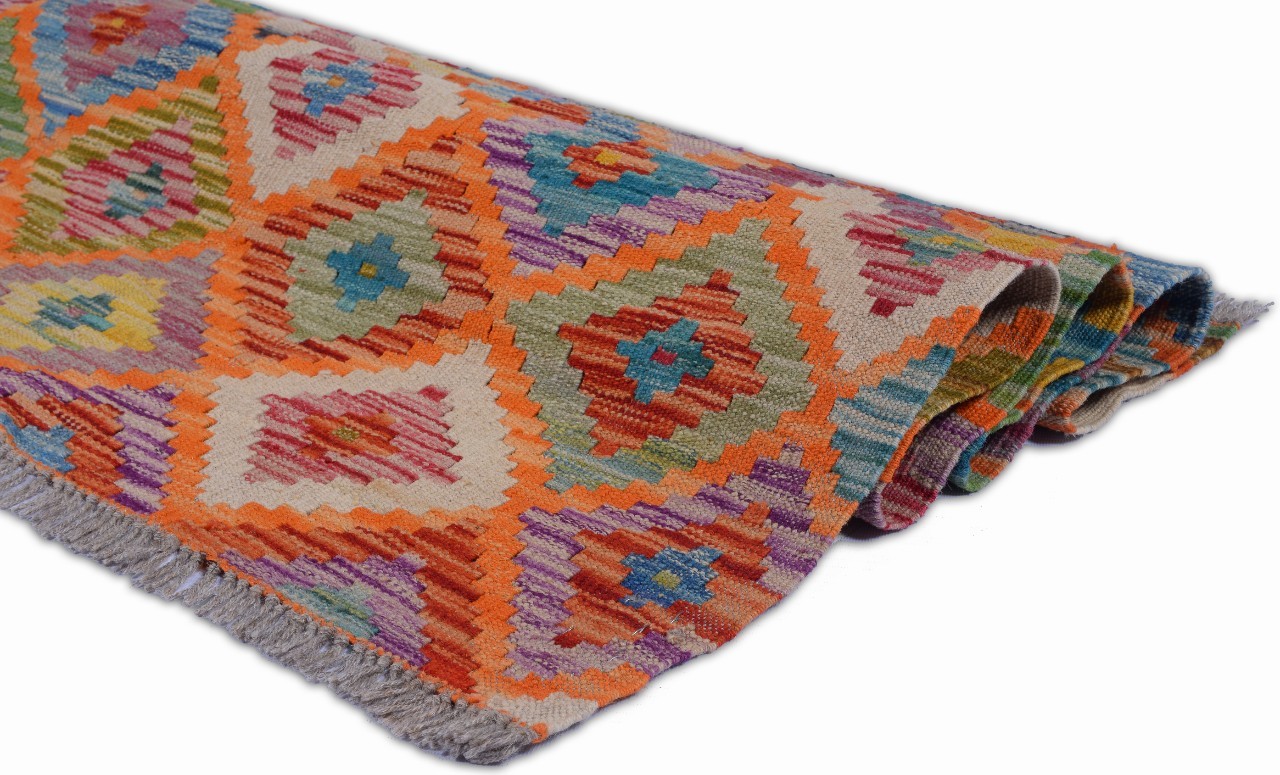 Hand Woven colorful Kilims uses vegitable dyes and handspun wool. Morrocan style pattern makes them a great option when you need a little character.