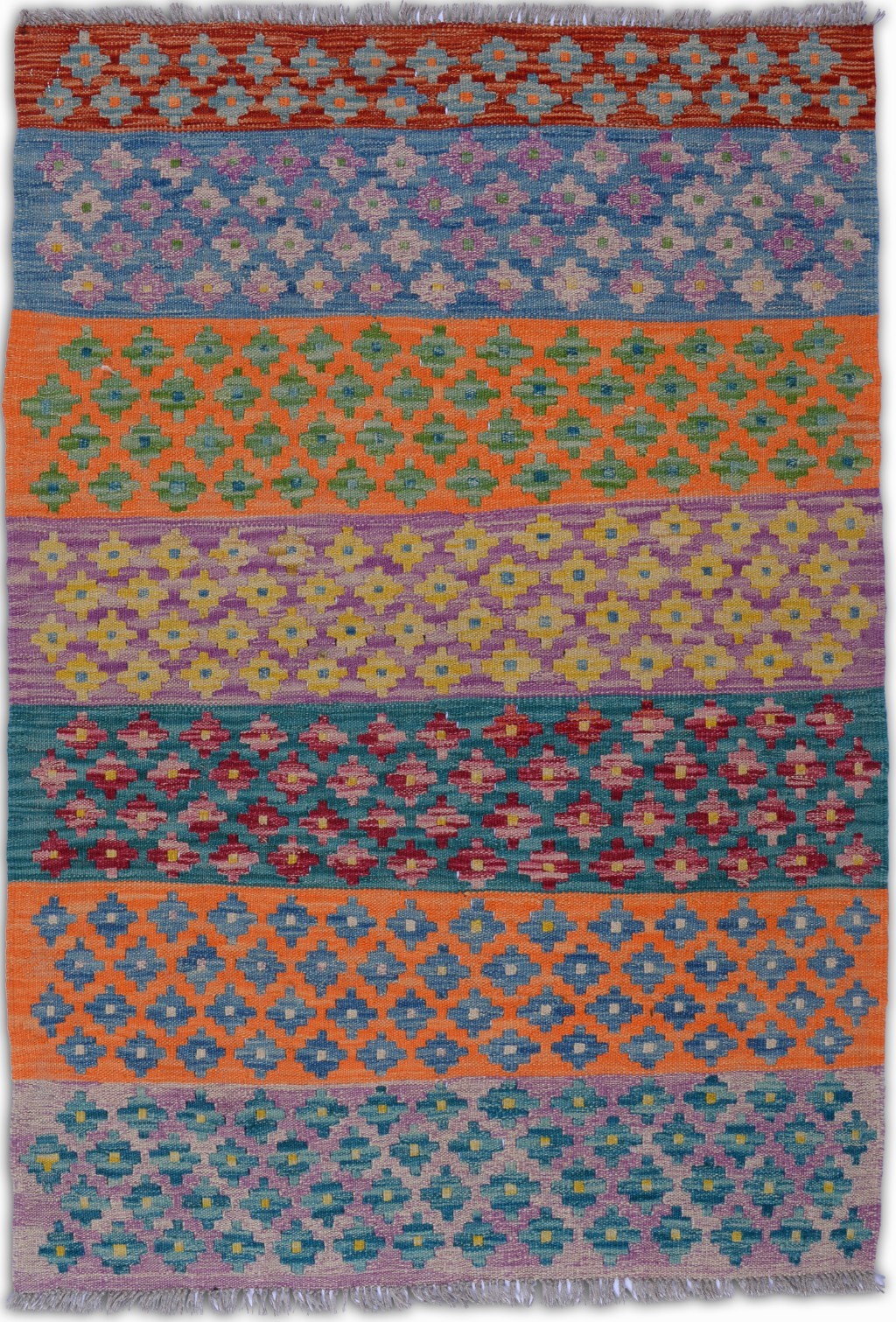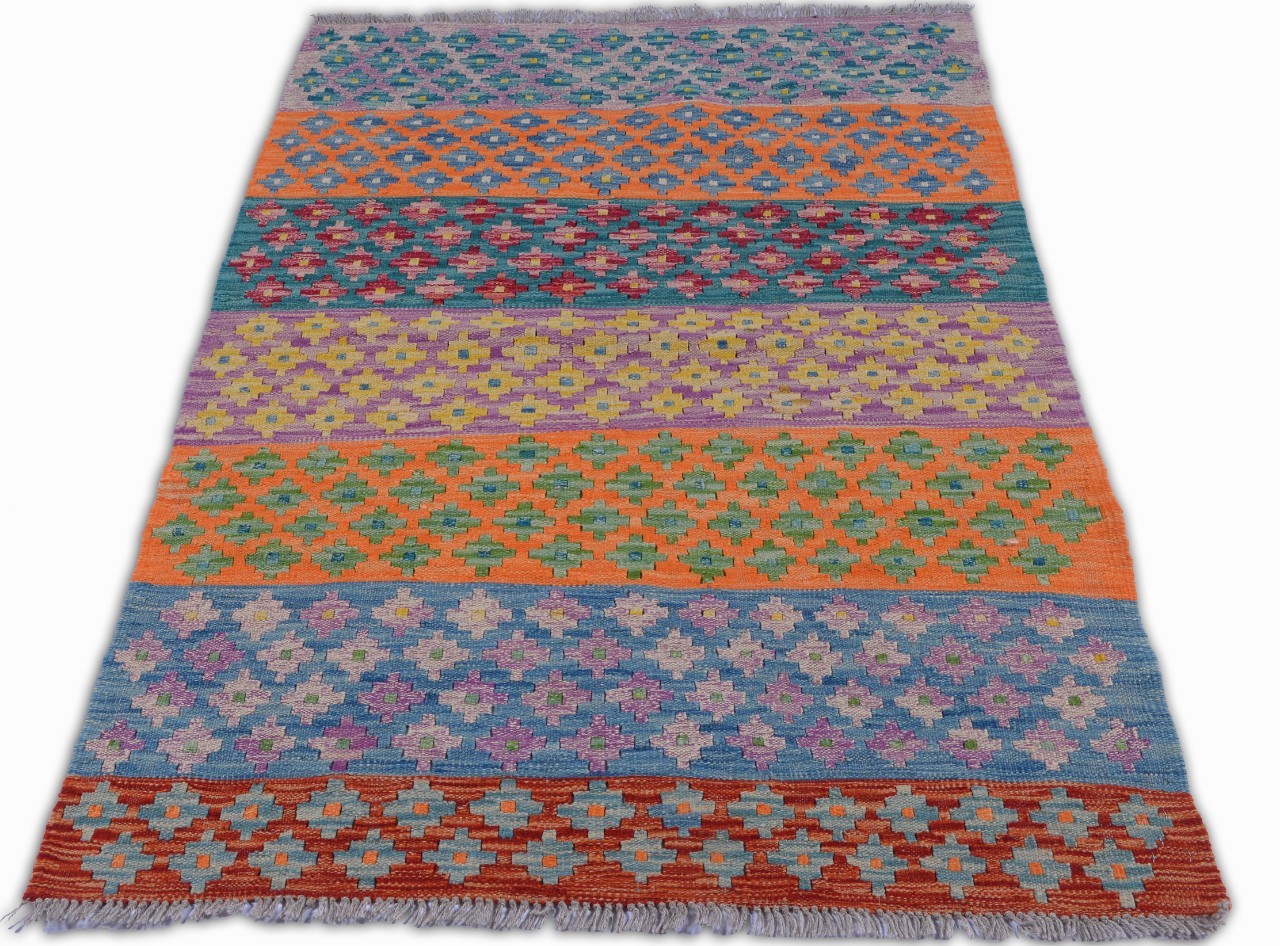 Hand Woven colorful Kilims uses vegitable dyes and handspun wool. Morrocan style pattern makes them a great option when you need a little character.