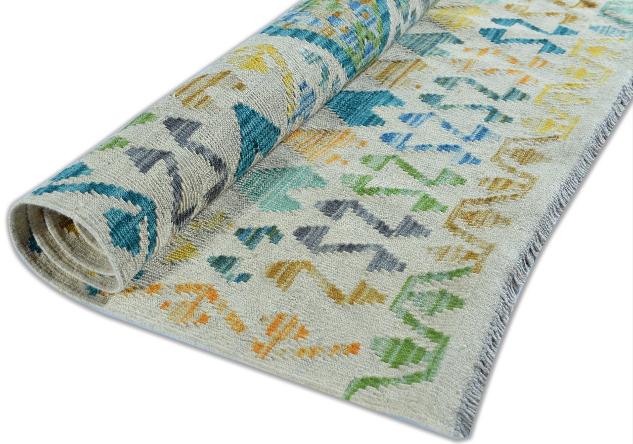 Hand Woven colorful Kilims uses vegitable dyes and handspun wool. Morrocan style pattern makes them a great option when you need a little character.
