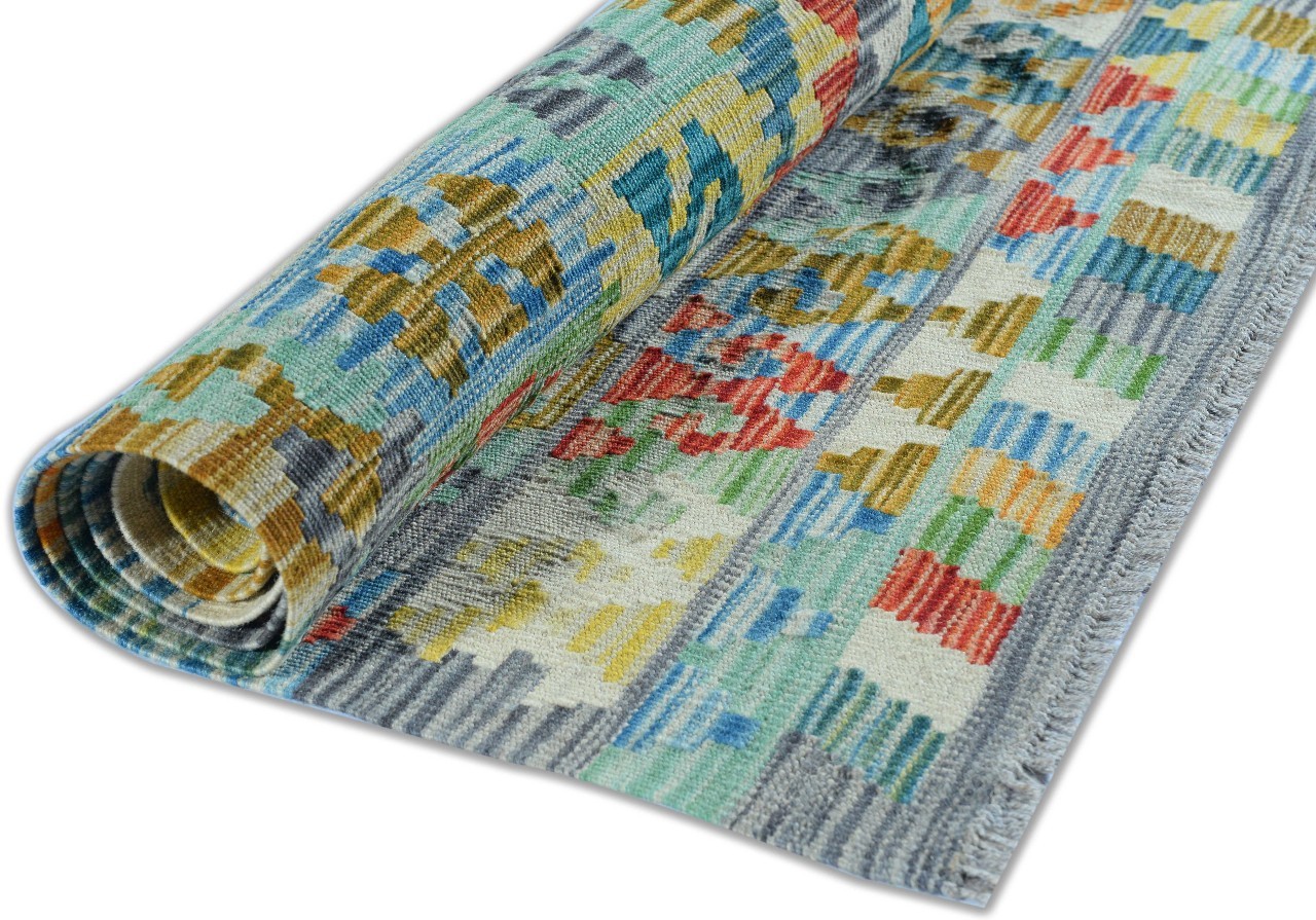 Hand Woven colorful Kilims uses vegitable dyes and handspun wool. Morrocan style pattern makes them a great option when you need a little character.