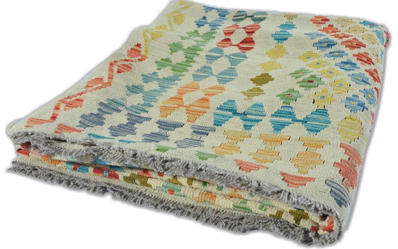 Hand Woven colorful Kilims uses vegitable dyes and handspun wool. Morrocan style pattern makes them a great option when you need a little character.
