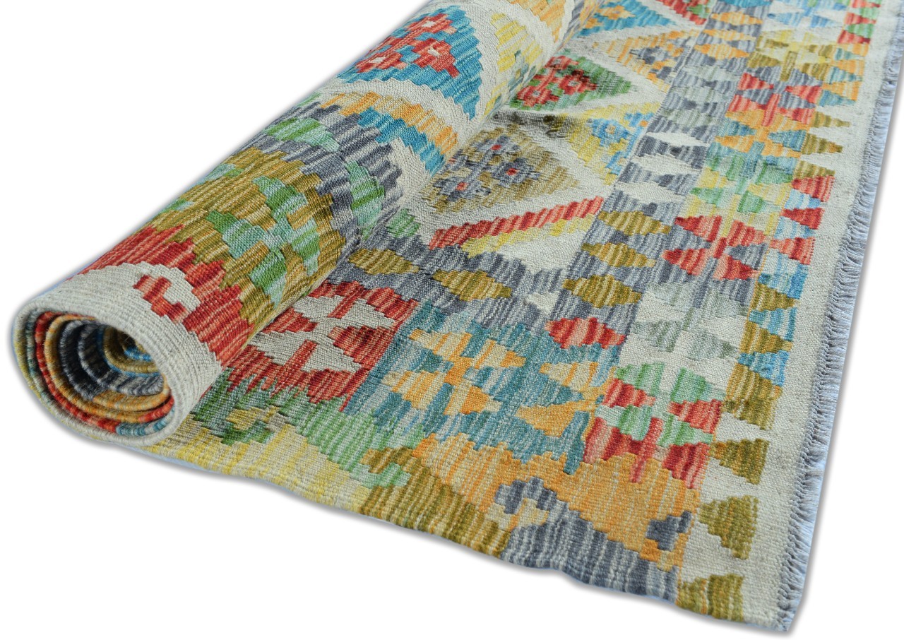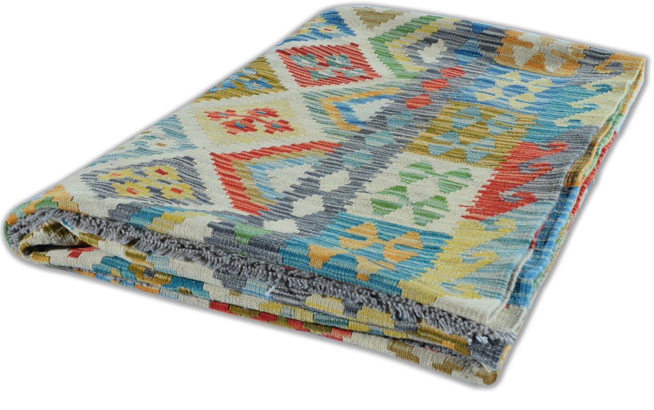 Hand Woven colorful Kilims uses vegitable dyes and handspun wool. Morrocan style pattern makes them a great option when you need a little character.