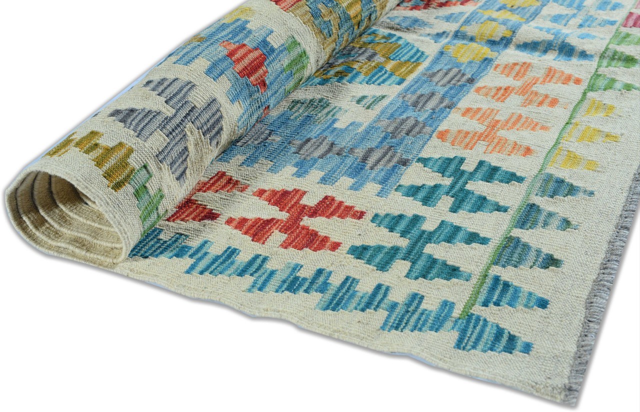 Hand Woven colorful Kilims uses vegitable dyes and handspun wool. Morrocan style pattern makes them a great option when you need a little character.
