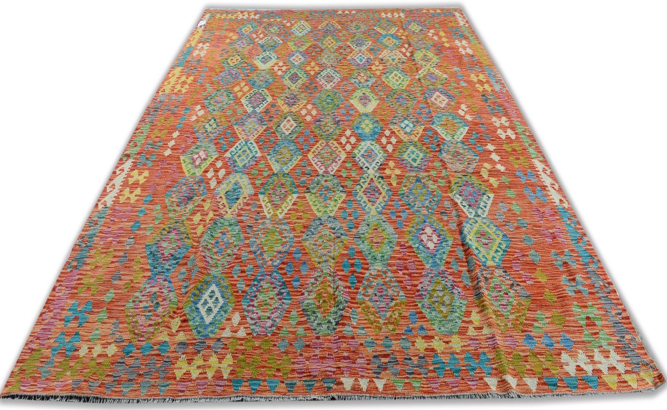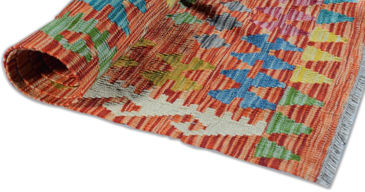 Hand Woven colorful Kilims uses vegitable dyes and handspun wool. Morrocan style pattern makes them a great option when you need a little character.