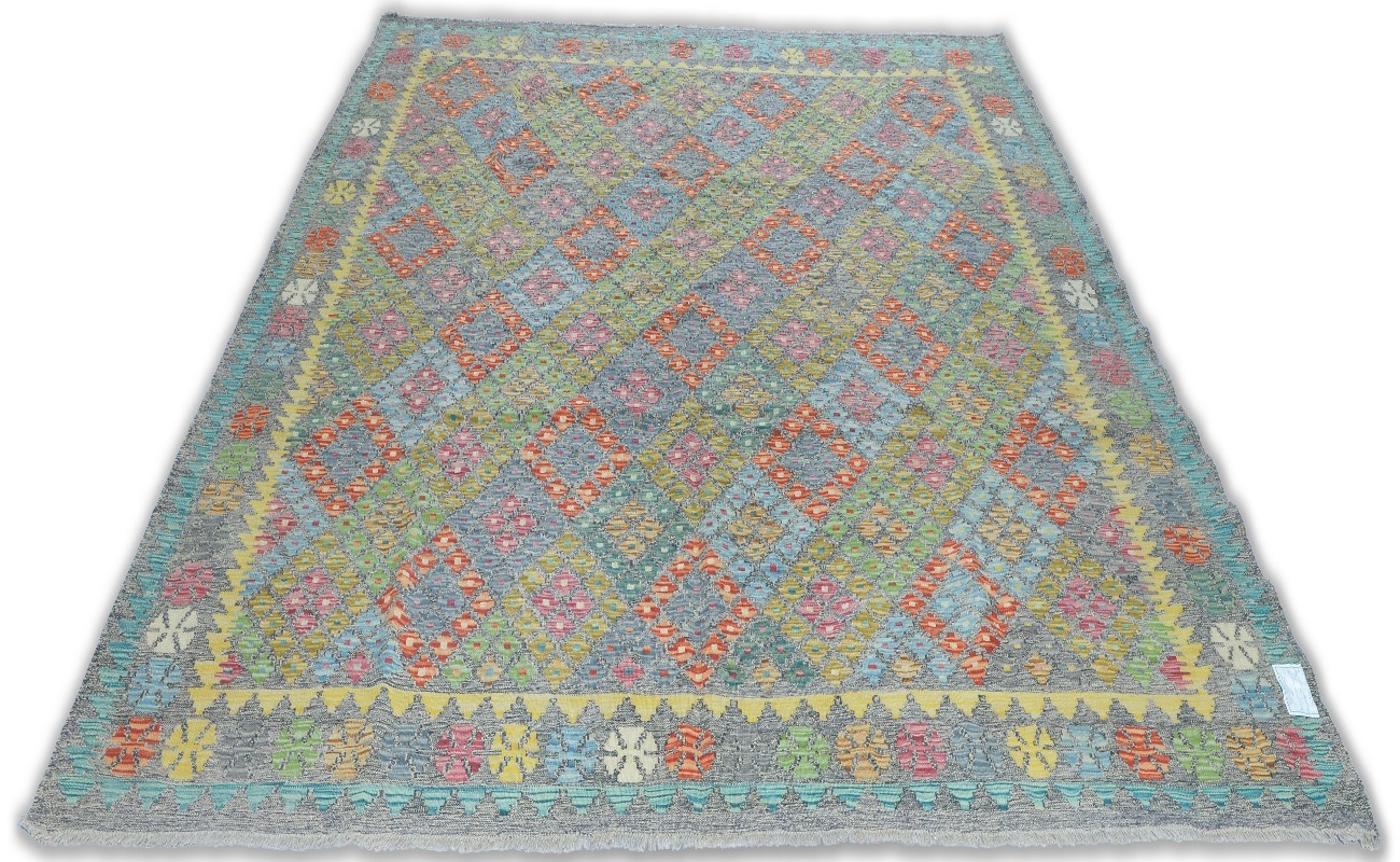 Hand Woven colorful Kilims uses vegitable dyes and handspun wool. Morrocan style pattern makes them a great option when you need a little character.