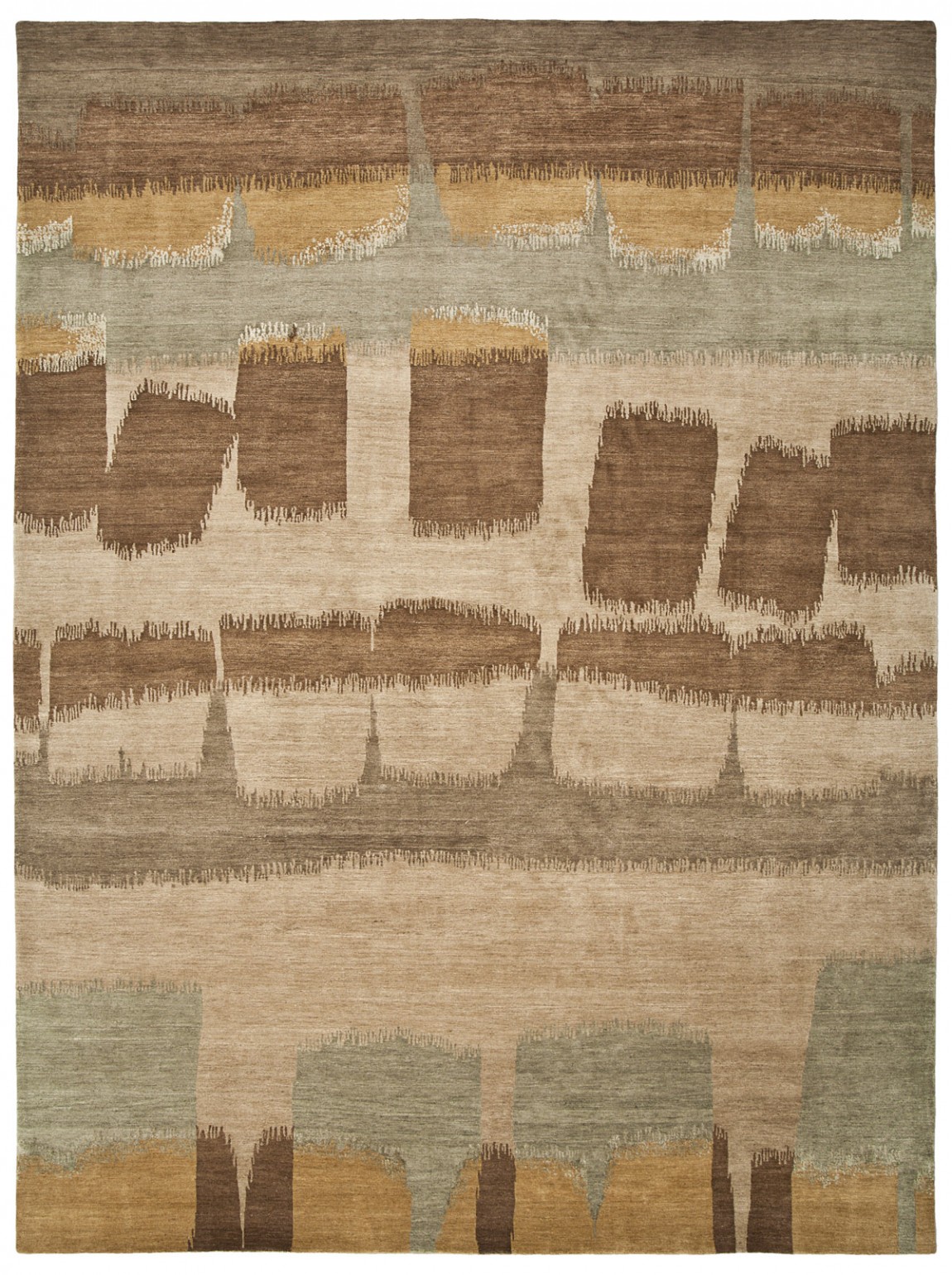 This breath taking hand knotted work of art will energize any interior. Crafted from high mountain wool and opulent silk, the Break modern area rug displays a stunning abstract design and quality construction that is pure luxury.