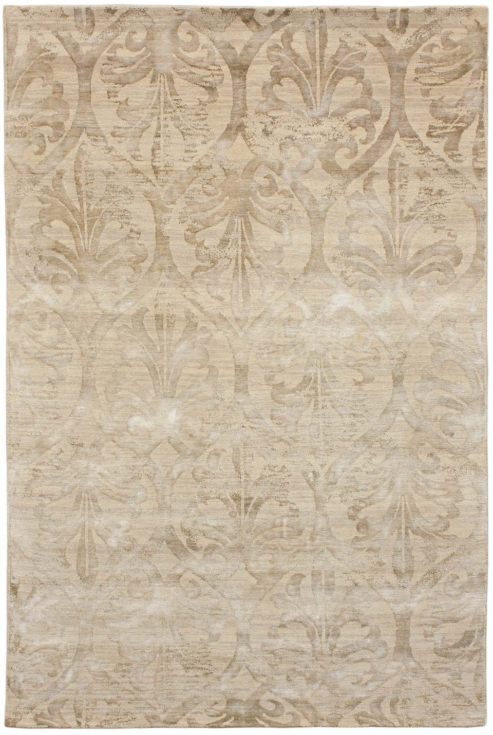 Featuring an ornate floral design and a divine use of colors, the Mae modern Oriental rug offers a great way to make a big impression. Hand knotted from mountain wool and man-made silk, this charming creation emanates pure opulence.