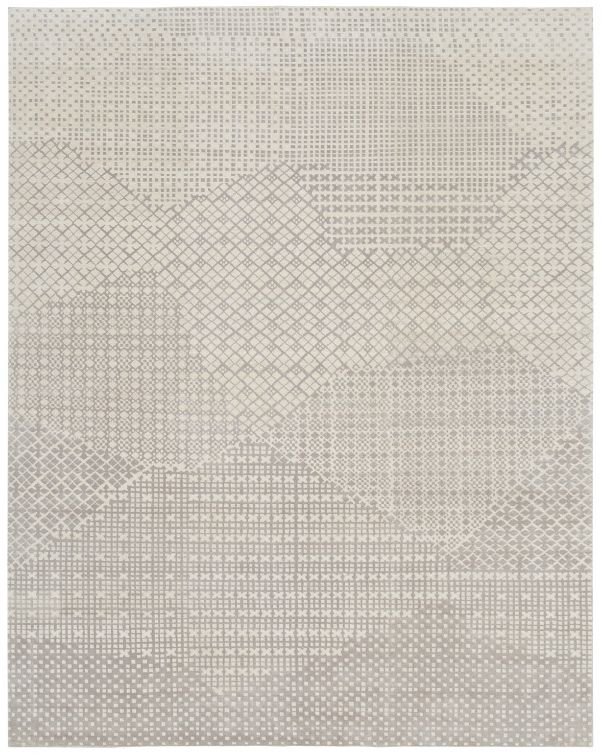 The Nefertiti modern area rug is hand knotted from the finest silk and wool and will thrive in any contemporary setting. Offered in a selection of colors, this geometric designed piece is nothing short of pure luxury.
