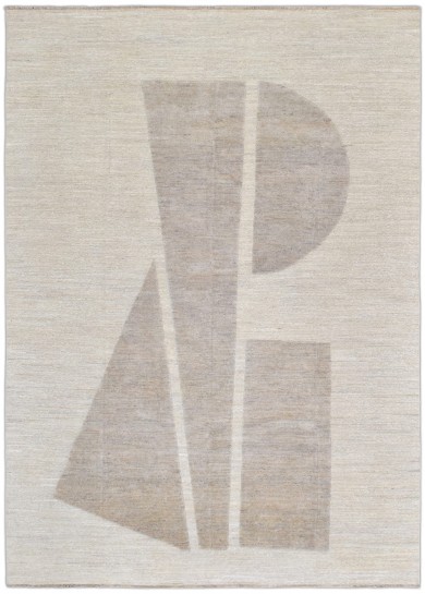 This elegant hand-knotted wool rug from Pakistan beautifully combines high cut pile with a low-pile soumak weave, resulting in a distinctive contrast of textures. Its design features bold, abstract shapes inspired by Italian artistry, lending a modern yet timeless feel to any room. Crafted with premium wool, this rug is both durable and soft underfoot, making it an ideal choice for those seeking a sophisticated statement piece. Perfect for contemporary interiors, it brings warmth, depth, and an