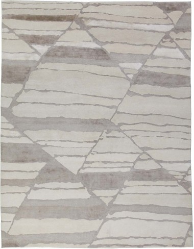 Intricately hand knotted from premium wool, silk and linen, the Ricochet modern handmade rug is a fantastic choice for the home or office. It combines a striking geometric design with a rich color scheme to magnificent effect.