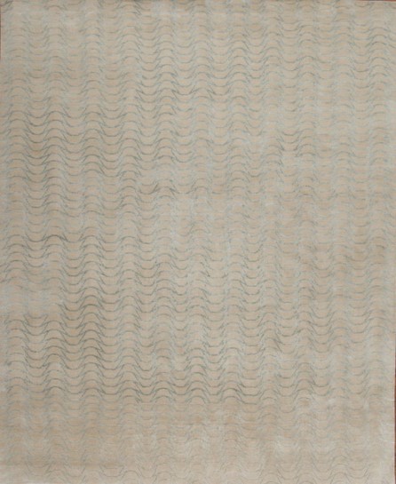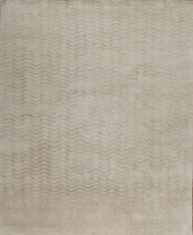 Add a new dimension to your living room, bedroom or office by introducing the Ripples modern Oriental rug. Utilizing a charming color scheme and an energetic curvilinear design, this luxurious Nepali piece is hand woven from silk and wool.