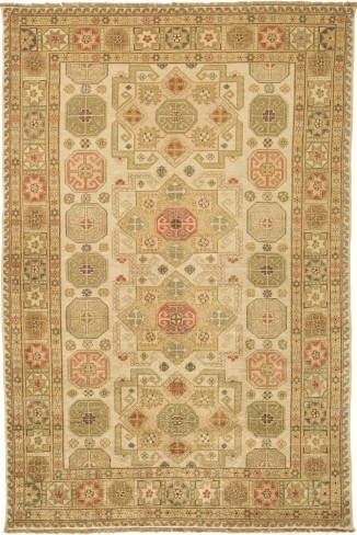 Hand knotted in China by master weavers, the Ryka traditional Oriental rug is an authentic geometric designed piece that will make a definite impact. Its elegant palette emanates a feeling of calm and its mountain wool weave is pure luxury.
