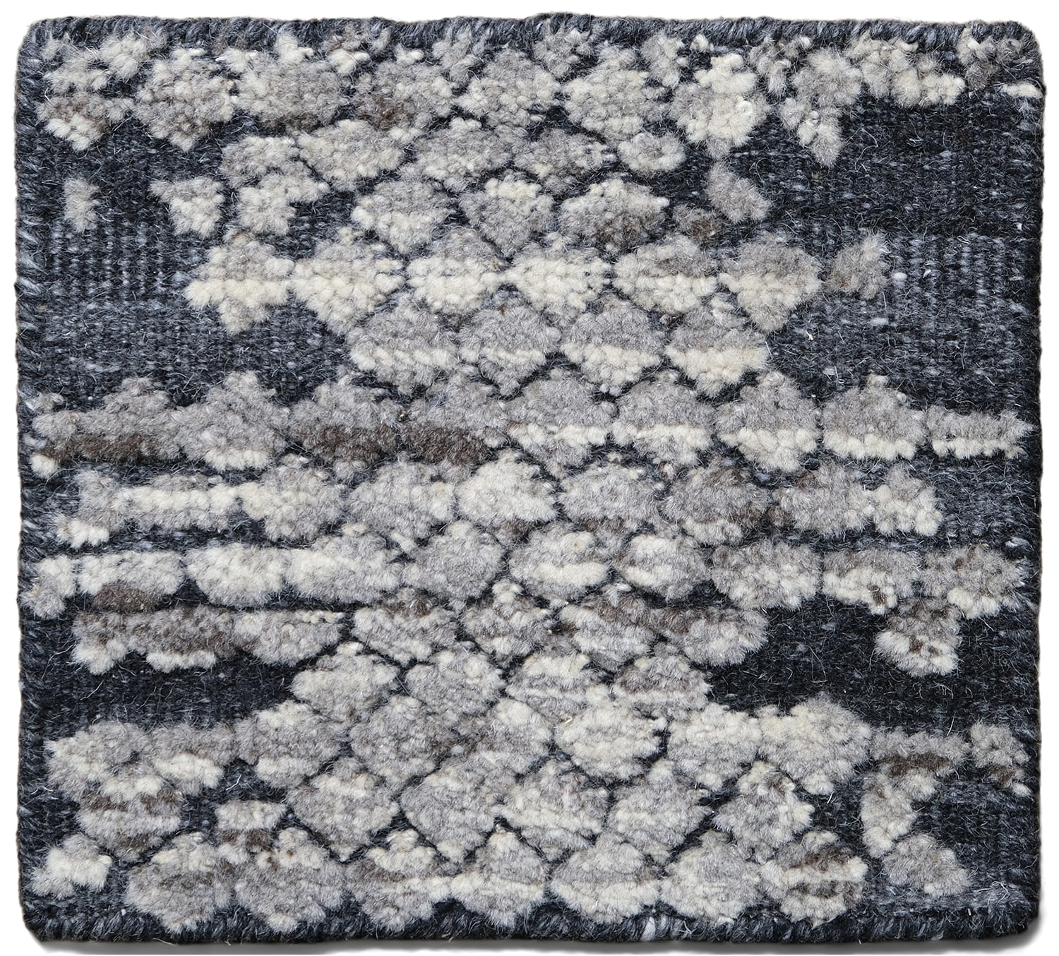 This hand-knotted wool rug features a striking high-low texture. The intricate design, showcasing a gradient pattern in elegant shades, adds depth and sophistication to any room. Crafted with premium wool, this rug offers durability and a luxurious feel underfoot, making it an ideal centerpiece for refined interiors.