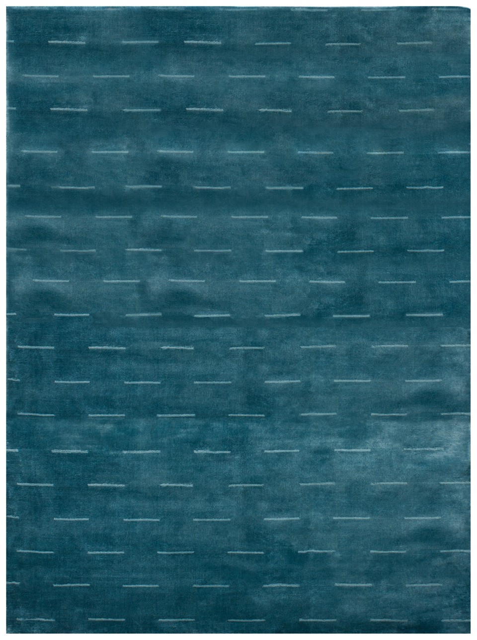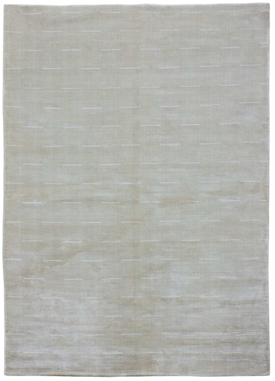 The Slotted modern designer rug is a fashion forward piece that embraces a linear design and a genuine hand knotted construction. Made in India from opulent man-made silk, this stunning creation is offered in a versatile range of colors.