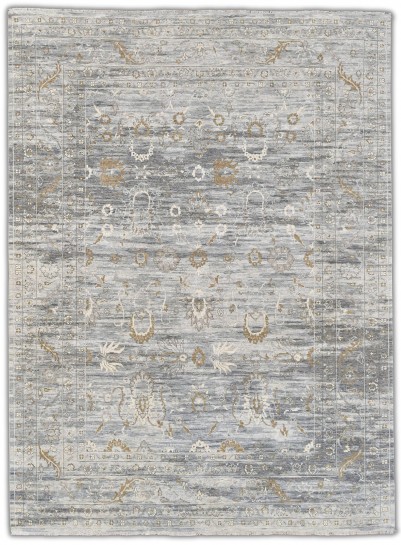 Hand-knotted very fine wool rug with a sophisticated floral design. The rug is composed of a muted color palette with shades of light green and ivory that create a tranquil and elegant look. The pattern is detailed with various botanical elements, including flowers, leaves, and vines, which are symmetrically arranged to give a sense of balance and serenity. The borders of the rug are intricately designed with a similar floral motif that complements the central area.
